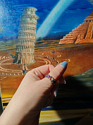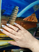 Сладкое название для кольца придумали наши подписчки. И действительно, форма и цвет вставок похожи на карамельные драже. Чередование камней и полых отверстий, повторяющих форму вставок, делает кольцо воздушным и изящным, а еще очень удобным.